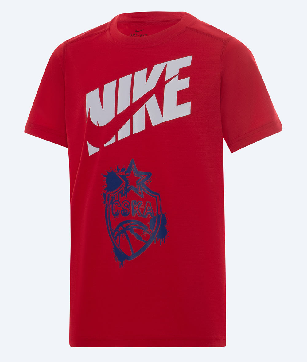 Футболка Nike красного цвета выполнена из мягкого хлопка, что обеспечивает комфорт и приятное ощущение на теле. На футболке присутствуют логотипы Nike и яркий логотип синего цвета баскетбольного клуба CSKA, что делает ее отличным выбором для поклонников спорта и болельщиков команды.